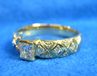 ピリンセスカットのダイヤを中央に周囲にメレーダイヤを彫り留め